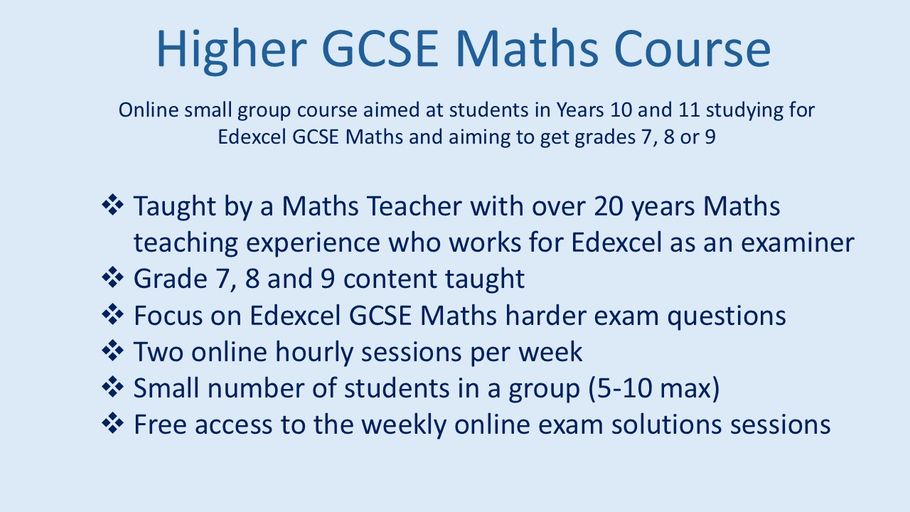 Small group online tutoring course focusing on the grade 7, 8 and 9 content of the Edexcel GCSE Maths course.