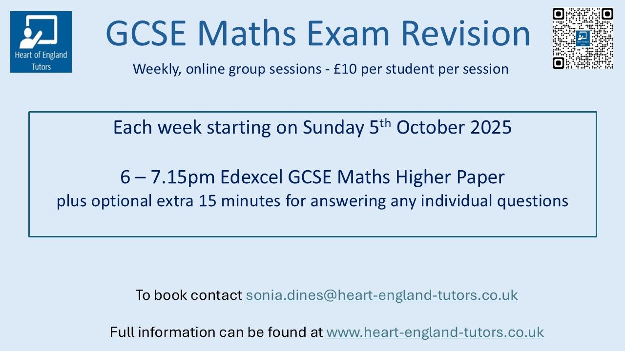 The weekly exam class is an opportunity to see worked solutions to an Edexcel GCSE Maths Higher past paper or mock paper. These sessions are designed to consolidate methods, correct misconceptions and enhance exam technique.