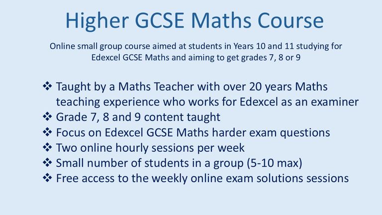 The grade 7, 8 and 9 content is often not taught in much depth at school when top set students range from target grades of 5 to 9. This course will include taught content from these more challenging topics as well as plenty of exam practise.